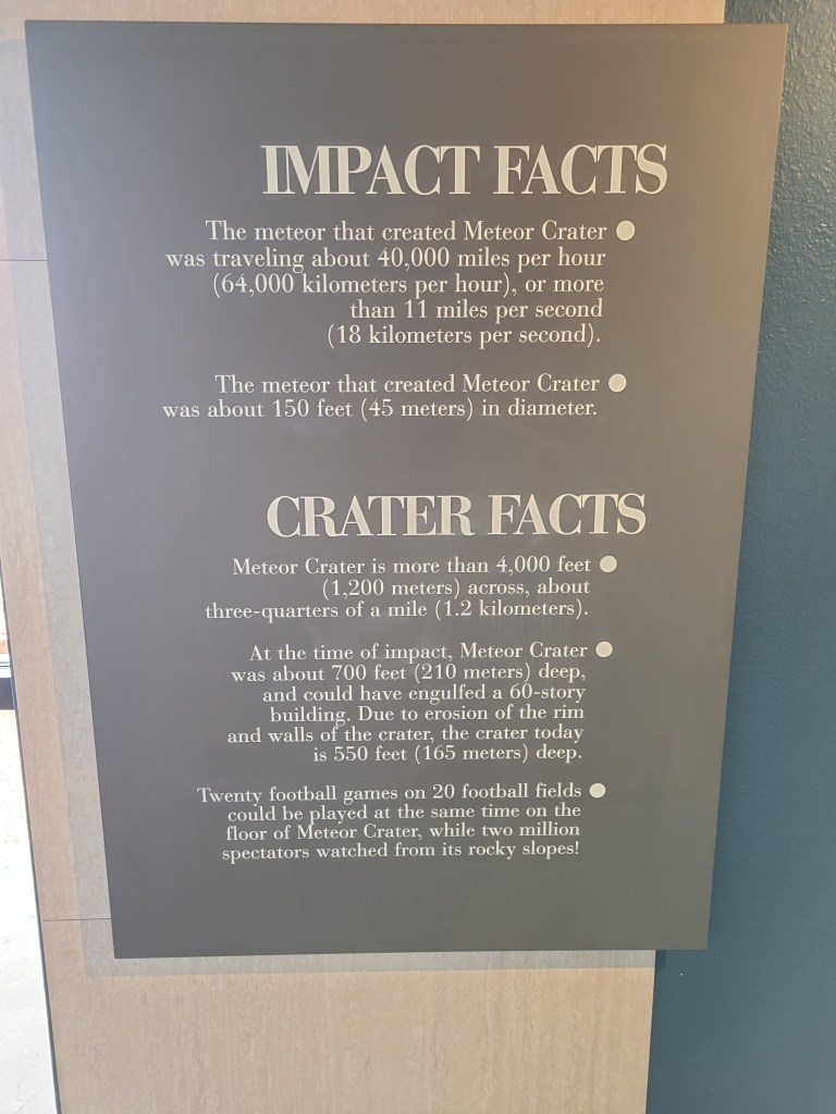 As our trip is starting to wind down, we left the whirlwind of National Parks behind us, and visited Meteor Crater in Arizona. I kept joking with everyone that I was going to see a hole in the ground, and I was not expecting to be as impressed with this stop as I was.