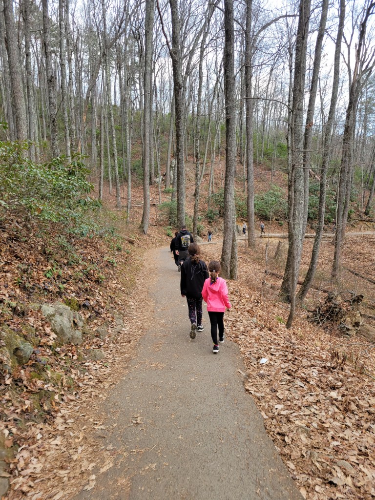 By the time we got done with the Skybridge and reunited with my bro & sis, we were done with the crowds, so we moved on to the Great Smoky Mountains National Park. The girls and I love to do the Junior Ranger program at the National Parks, so we first stopped at the Sugarlands Visitors Center to get our booklets. Next, we drove to the trailhead for Laurel Falls. This trail is an out-and-back trail, totaling 2.4 miles (or as I sold it to Wormy and Squid – 1.2 miles to get to the waterfall…wink, wink).