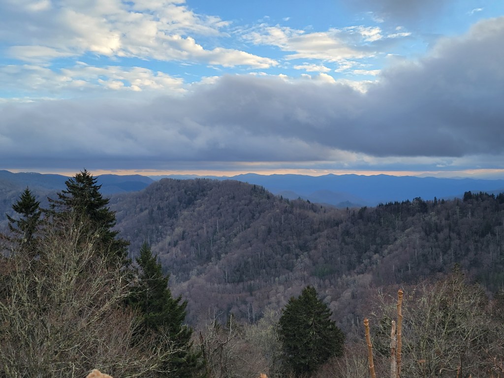 After we finished up at the trail, we drove around the park a bit more. Unfortunately, since it was winter, Clingmans Dome was closed. However, we did go check out the Appalachian Trail and stood on the Tennessee/North Carolina state line. The views over there were beautiful, as well. I can only imagine how amazing it is at sunset and when the plants/trees aren’t dormant due to winter!