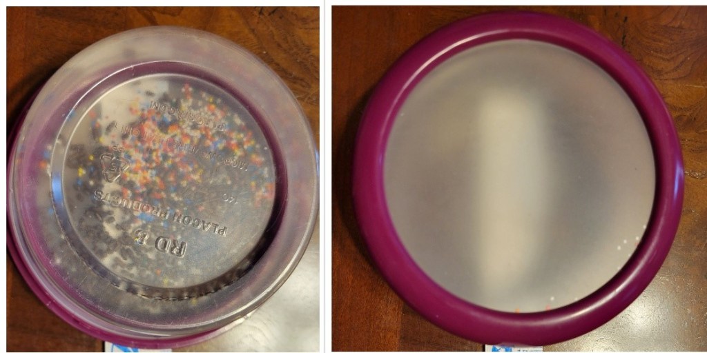 Another experiment I proposed was a basic sound experiment used to show kids of any age that sound is caused by vibration. Usually, a teacher will stretch plastic wrap over a bowl of cup so that it is taut. They will then pour glitter or cupcake sprinkles (or rice, or salt, or….) on the plastic wrap. When any sound is played at the plastic wrap (from a gong, cymbals, any band or orchestra instrument), the sprinkles/glitter/rice/salt dances. I decided I could do a variation on this with a container to keep the small particles in.