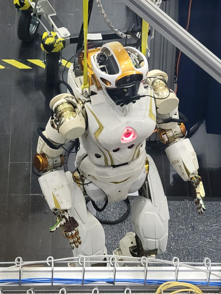 It did not take us long to get to the Space Vehicle Mockup, and it was fun to feel the anticipation of what I would see inside. This building was really interesting, as this is where the astronauts train in the different vehicles they will use to get to, or hang out in, space. There is a mockup of every possible vehicle that NASA uses. The neat thing was that we could see training going on while we were there. They were trying out a new space suit while we watched, and they were also working with Valkyrie, which are some cool space robots.