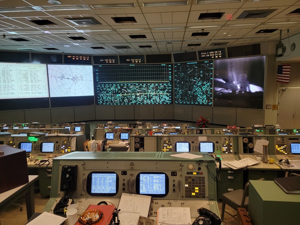 After he left, I made sure to book my tram tours, as I had read these fill up fast! You have to download the Space Center app and then book the (free) tram tours through that. There were two tours running the day I was there – one to go see the Space Vehicle Mockup Facility (white tram) and the other to visit Mission Control (blue tram). I booked the Space Vehicle Mockup first, as it had the shorter wait time. While I waited for my tram time, I ate lunch at the cafeteria, enjoyed the other exhibits, and listened to a talk about experiments on the International Space Station.