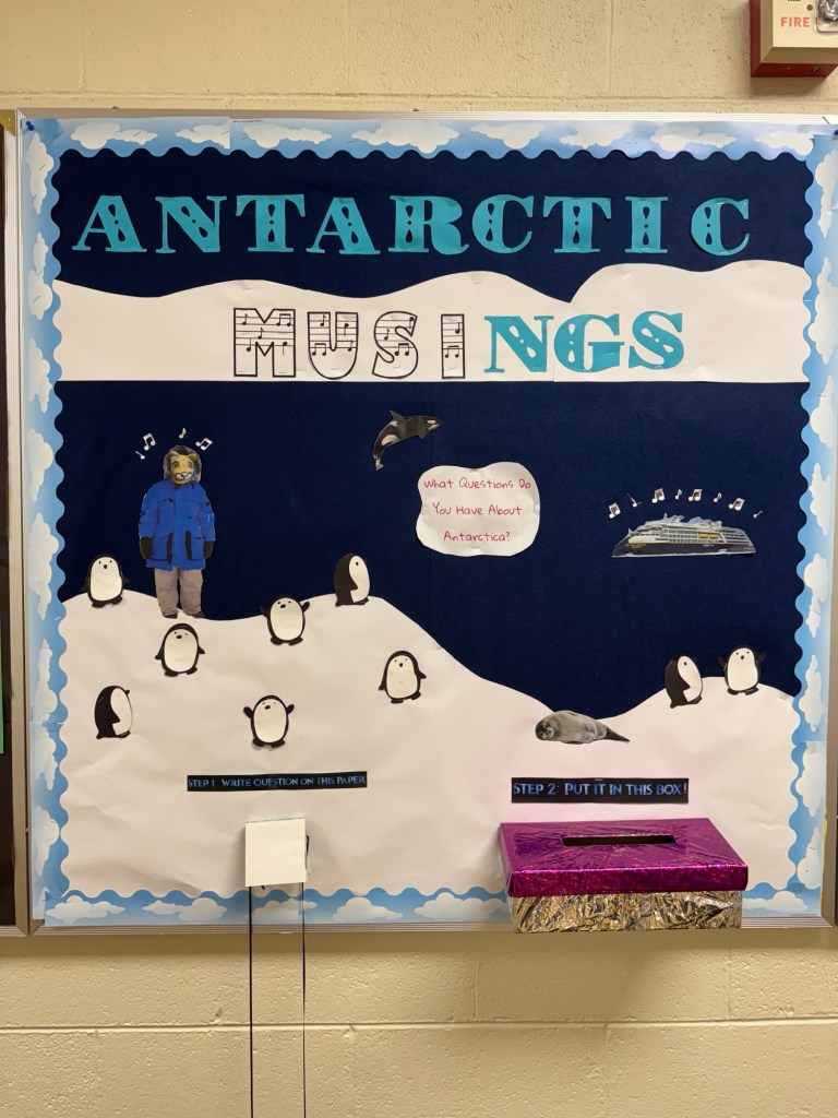 Anyway, one of the skills I really love to develop in the music classroom is curiosity. It feels like the students I’ve taught in the past reach a certain age and lose the ability to act or share their curiosity. I have a few theories on why this happens, but it is my goal to prevent it from happening. As I get closer to leaving for Antarctica, I’m really encouraging the students to do deep into their imaginations and wonder about what Antarctica is like. I’ve created a bulletin board for them to put any questions they want me to find the answers to in a curiosity box. I set this up just in time for the parent teacher conferences we had on Thursday and Friday, so that I could encourage parents to ask questions, too. The box had a lot of questions in it before conferences, and it was fun to see students showing their parents the bulletin board and encouraging the adults to put questions in the box, too.
