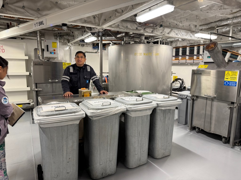 After lunch, we got to experience a tour of the garbage area of the ship. Jacqueline and I had learned a lot about Lindblad Expeditions’ commitment to being sustainable and eco-friendly, so it was fascinating to see how the crew has to sort out all of the garbage. Some things get incinerated, and a lot of it gets compacted.