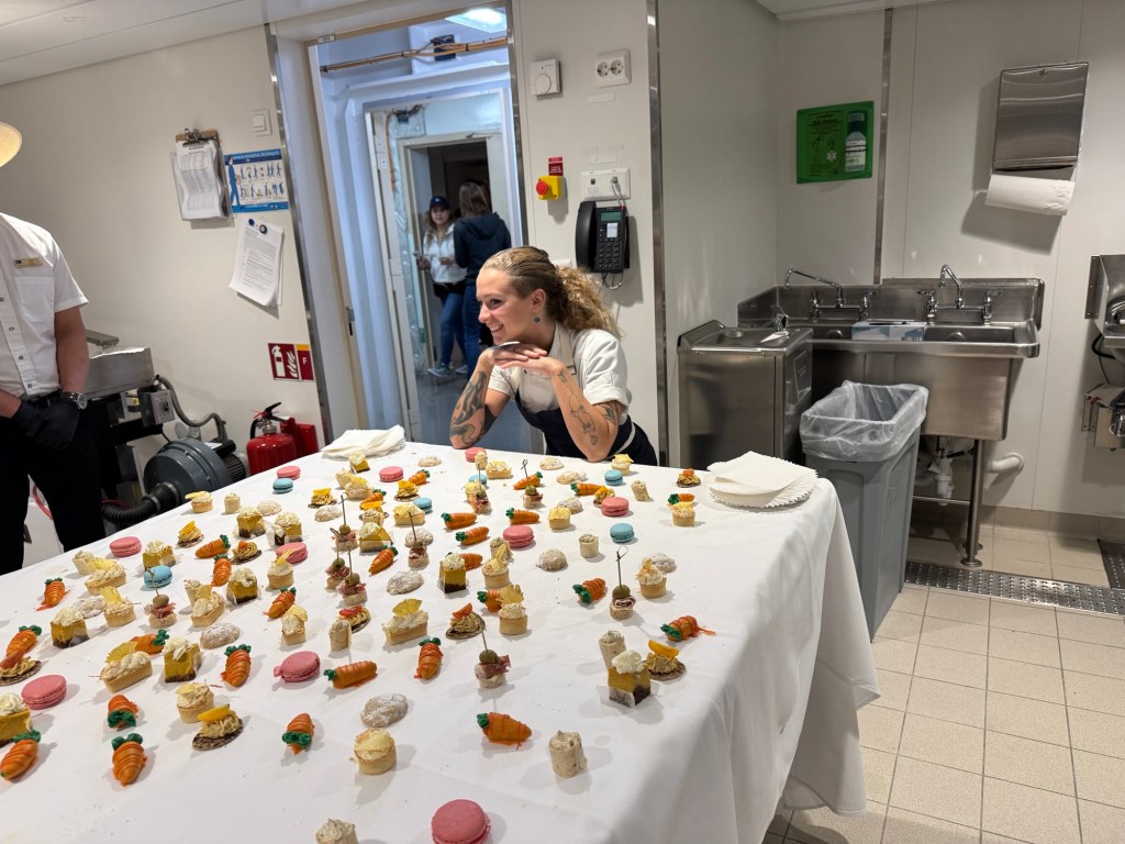 We were then treated to a presentation on the history of whaling. After that was done, it was tea time. Today’s tea time was special because the crew held it in the laundry room of the ship, and opened up the whole area for tours. We got to see the laundry room, the engine control room, the azipod controls, and the garage where they keep the zodiacs and kayaks. I was incredibly impressed by how pristine all of these areas were- it looked like our ship was brand new!