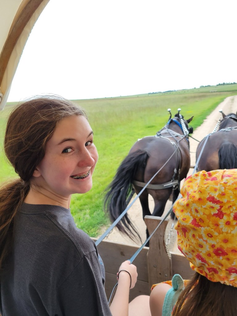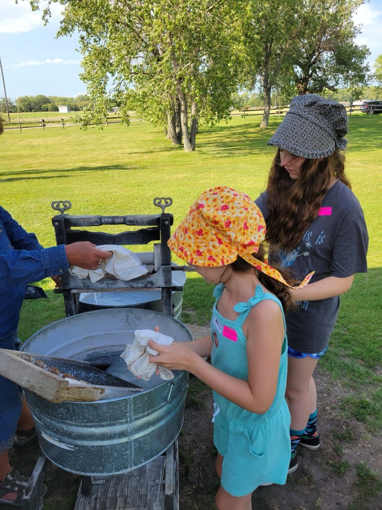 Then we drove to De Smet, SD for the Laura Ingalls Wilder Historic Homes Tour. We also visited the DeSmet Cemetery to pay our respects to the Wilder family. We then visited the Laura Ingalls Wilder Homestead also in DeSmet, which was a very fun place to visit, as well, as you could learn to do laundry the way people did during this time period, go to school to see what that was like, and make your own corn dolls and jump ropes. We stayed overnight at the Homestead, getting a covered a wagon as our lodging for the night.We even got an intense prairie storm featuring hail and hefty winds. We took shelter in the bathroom because we weren’t sure how the canvas of a covered wagon holds up to hail, but it turns out we were the only ones concerned!