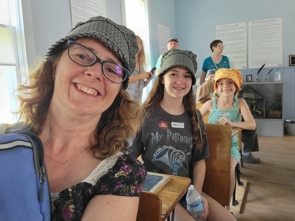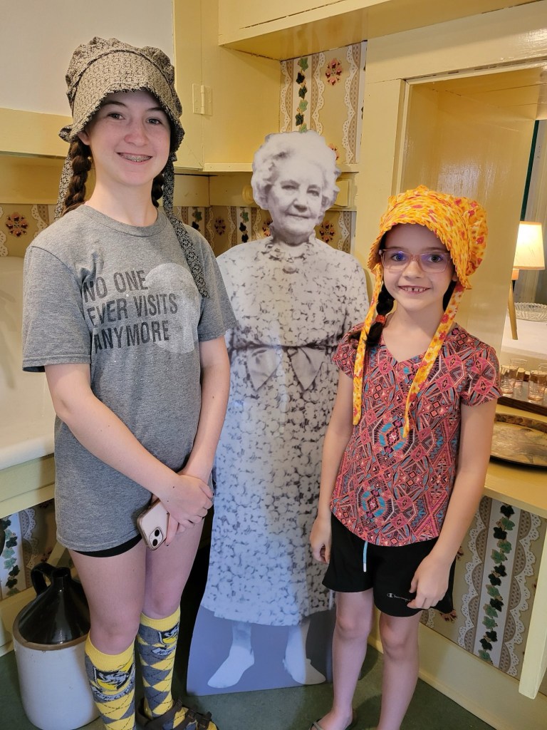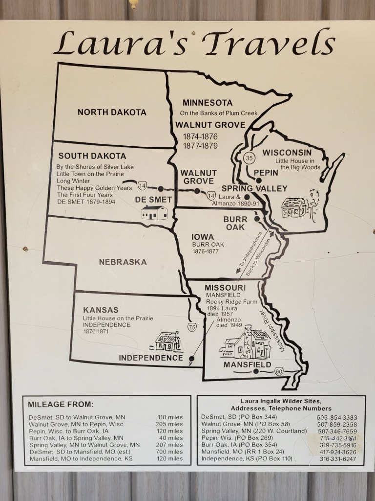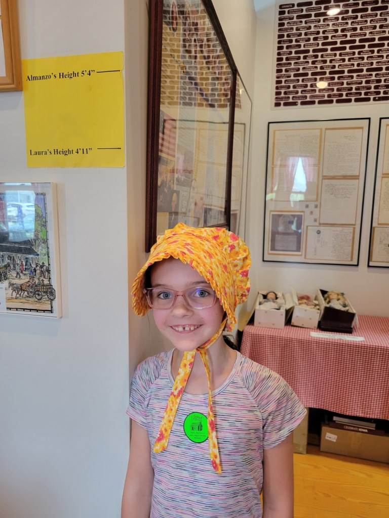 We started off in our very own state first – kicking it to Pepin, WI for the Little House on the Big Woods. This site is a wayside off of the highway, so you really don’t ever have to worry about the hours of the house. We’ve visited before, but it was a great spot to kick off the trip! We had not been to the Laura Ingalls Wilder Museum in town, though, and that was the perfect place to buy some bonnets to carry us through our trip, and look at some artifacts from Laura and her family.