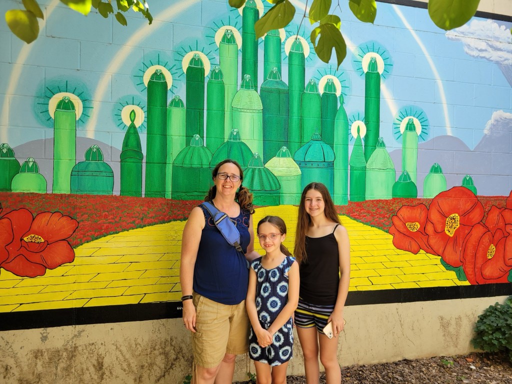 Our next day did not feature any Laura Ingalls Wilder sites, as we had to drive all the way down to Independence, Kansas. However, we did stop to see things because I don’t like driving that long without some fun stops. We went to the Oz Museum in Wamego, as both of my girls are fans. We also stopped at the Tallgrass National Prairie Reserve to imagine what the prairie looked like during Laura’s life. We saw the biggest grasshoppers, and felt the intense summer heat.